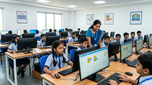 Fully equipped computer labs with modern desktops introducing students to digital literacy, basic programming, MS Office, and internet skills from an early age.